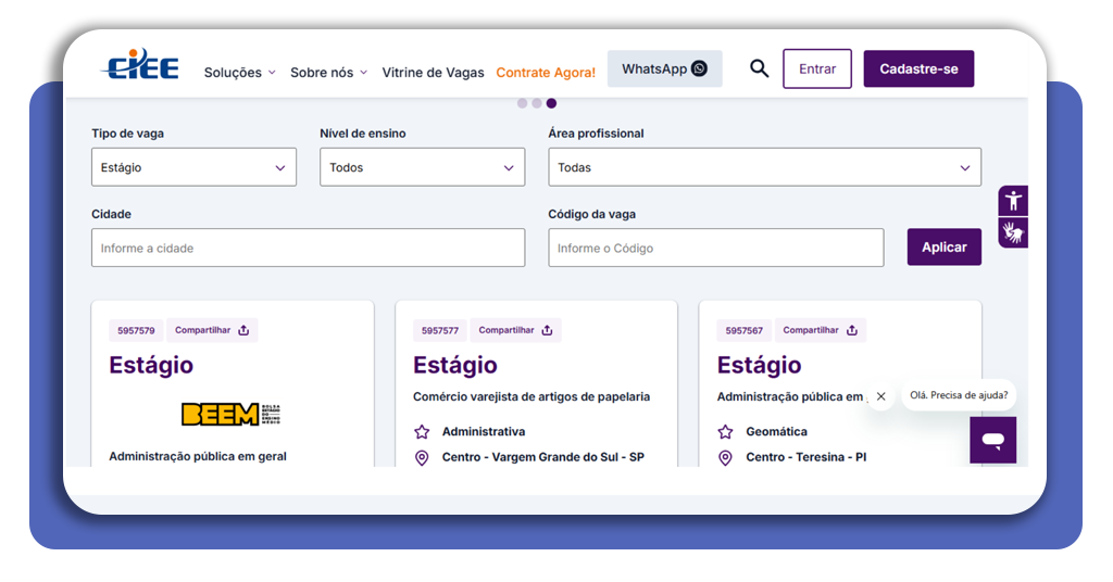 Acesse a vitrine de vagas, aposte nos filtros e busque pela melhor oportunidade para vagas de estágio nível médio.