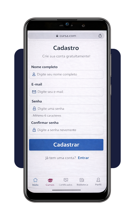 Entre na página do curso na plataforma Cursa (Android | iOS) pelo celular ou computador.
