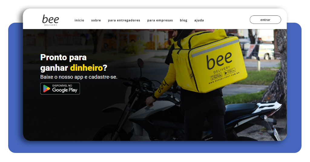 Acesse o site da Bee Delivery e clique em “Seja um entregador”.