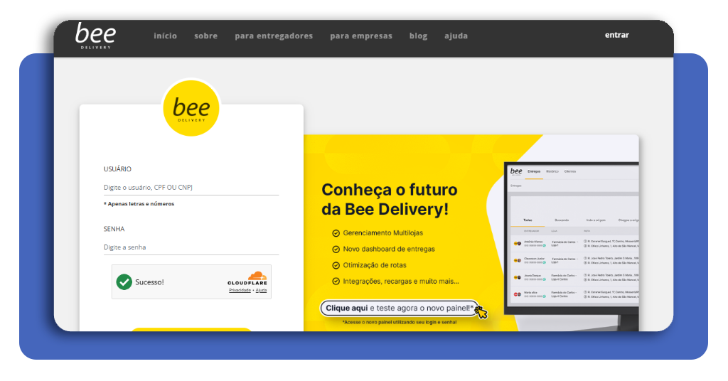 Passo 1: acesse o site da Bee Delivery