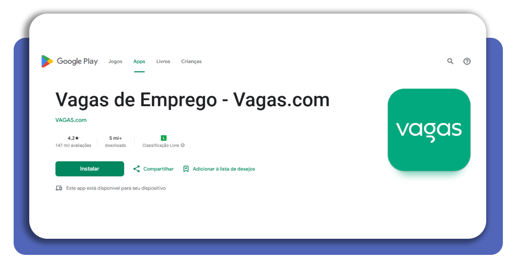 Acesse sua loja de aplicativos, busque pelo app Vagas (Android e iOS) e faça o download como de costume.