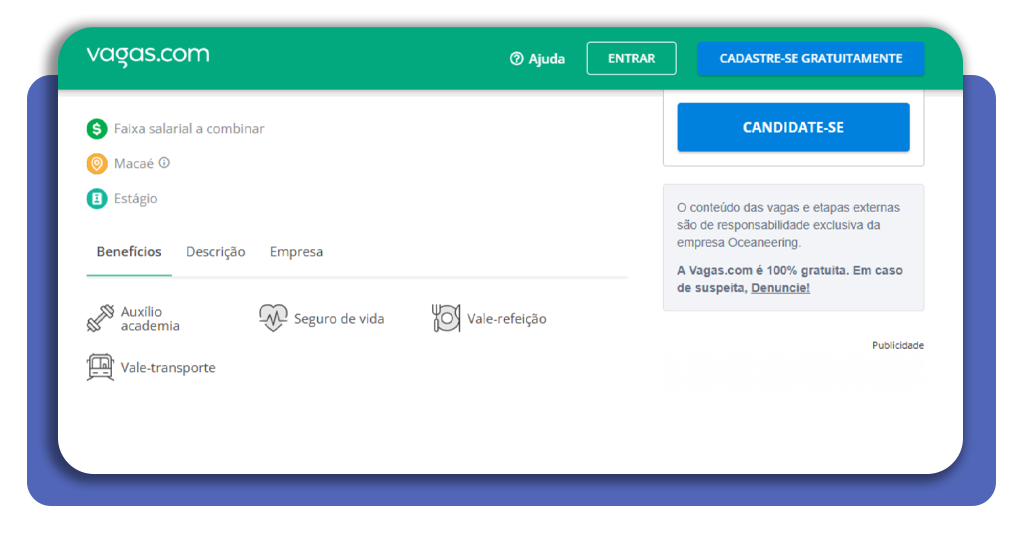 Esse filtro é fundamental, pois muitas vagas de emprego de Offshore informam detalhes importantes como a escala de trabalho, benefícios oferecidos, exigência de cursos obrigatórios e experiência mínima.